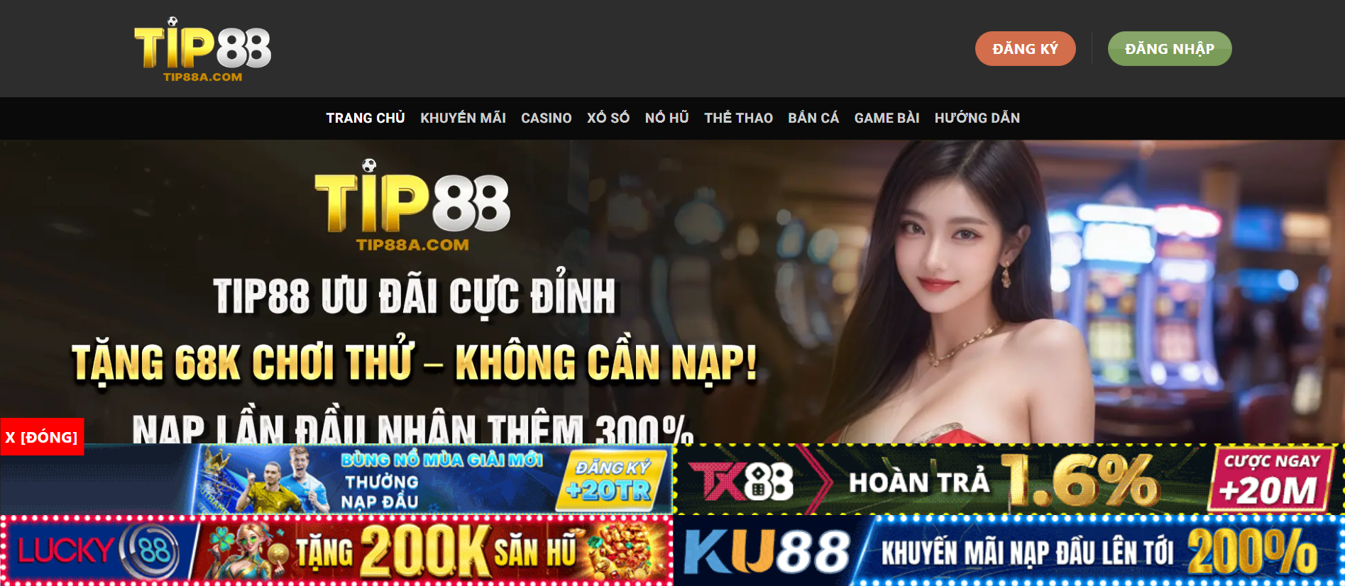 TIP88A là nền tảng ca cược trực tuyến hiện đại, cung cấp đa dạng trò chơi giải trí như casino trực tiếp, slot game, bắn cá và ca cược thể thao. Website được tối ưu tốc độ, giao diện thân thiện và hệ thống bảo mật cao, mang đến trải nghiệm ổn định và an toàn cho người chơi.