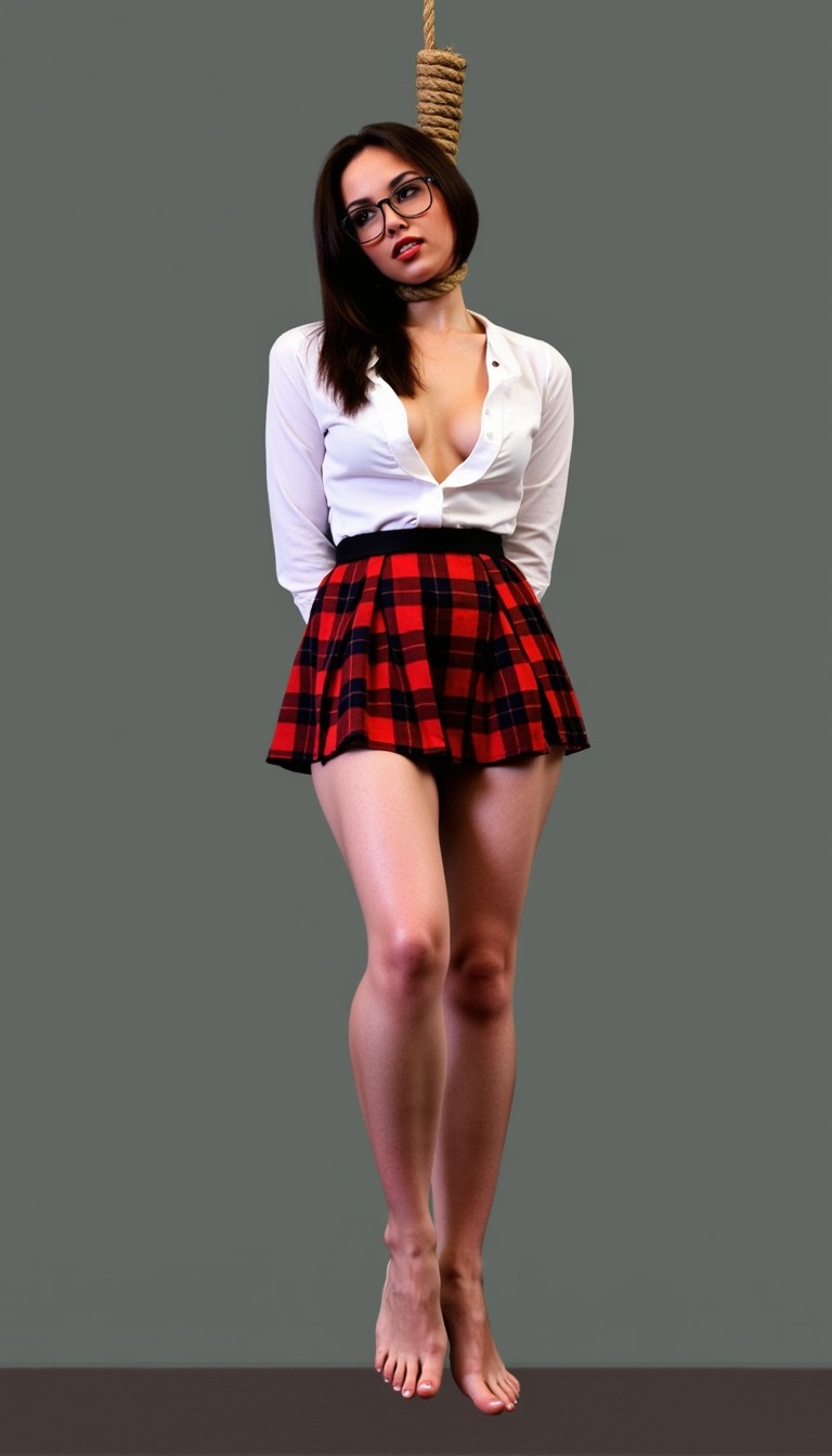 Typical prompt: Photo of a topless h4nging woman with a hemp rope around her neck, h4nging from a tree/Wooden gallows/ceiling.