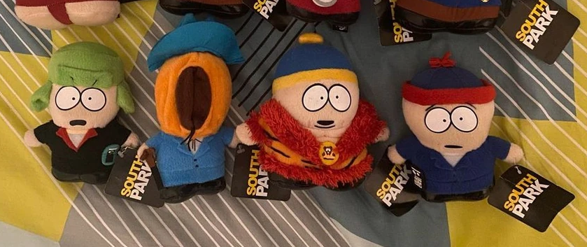 basic view of my collection so far. not everything's in it like my other chef plush, shoes, plushie bouqets, some keychains, and bags because i can't find a good spot for them so they're just on a seperate shelf. also it's hard to display my shoes because i actually wear them LOL, im constantly taking and putting them back. but i do have the kyle and stan adidas collab ones. the heelys (the ones i hardly wear anymore) are visible in the photo. i highkey might cop kenny's 'cause i need more orange in my wardrobe. i also need more tapestries, my walls are mad empty. ALSO one of my bigger wishlist items are the south park vinyls, like the character ones. i need them to match my vinyl wall cause the records i have up now do NOT match at allπ₯Ή