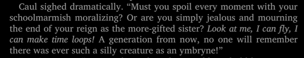 - half of her character is envy of ymbrynes and this definitely CAN BE READ as a transsexual allegory. and although im sure that our comfort cishet white man ransom riggs was not thinking that deeply, i dont really care because, in the world that im living in, having a key component of your character being yearning for a characteristic that is exclusive to the opposite sex is fair game to call you a tranny. sorry!!!