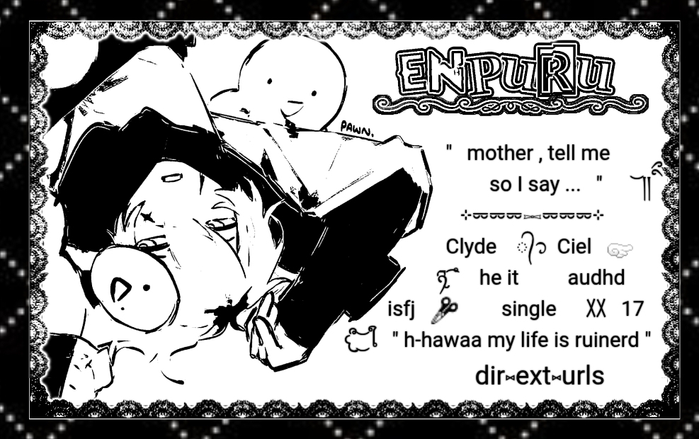 Clyde or Ciel⠀he/it⠀audhd⠀isfj⠀single ( happily ) audhd⠀⠀⠀back