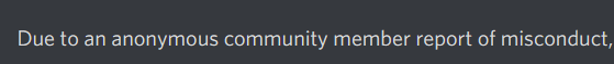 - On June 11 2022 I was informed by Moose I was banned because of an anonymous report made to TMH. This is the first time I ever hear about this situation.