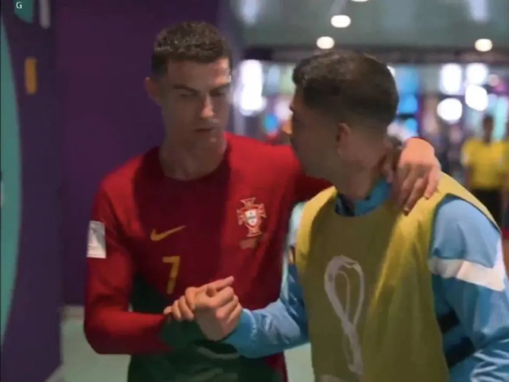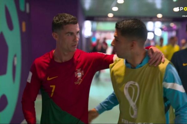 Cristiano and Luis hug in the tunnel