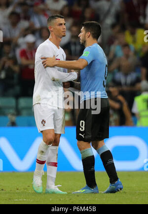 Portugal and Uruguay meet in the 2018 World Cup, and Portugal is ultimately eliminated. Luis assisted both goals. Cristiano and Luis shook hands multiple times oh yes....