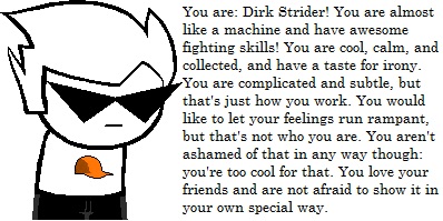 dirk strider the dick rider but in all seriousness dirk is a very complex character that nobdoy but me will ever understand to the depth of what he is. i love him in my soul for him because he is the best