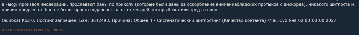 вообщем с треда можно окончательно ливать, я и так там почти не сидел из за мочараторов, но это уже максимально свинство так себя вести. тем более в праздничный день. модератор с дискорда пришел со своими друзьяшками и делает что хочет, ну это совсем пиздец какой то. рака жопы тебе защитник швятого протыка