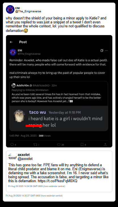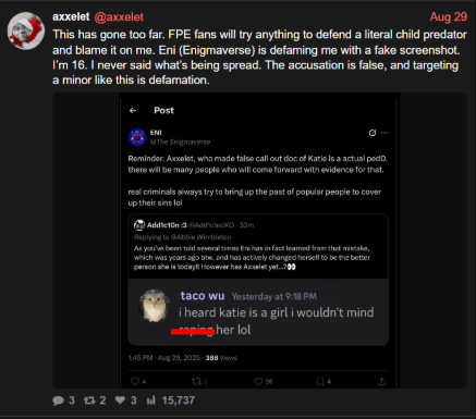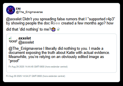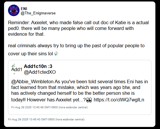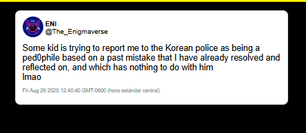 Enigma successfully dismissed the initial investigative document by labeling its promoters as "groomers" or "criminals." By making the source of the information socially radioactive, she ensured that her young fanbase would not read the actual data contained within the report.