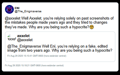When confronted with verifiable digital footprints (such as the metadata or the NSFW history), Enigma consistently frames the evidence as "expired" or "resolved mistakes." This tactic relies on the audience's willingness to prioritize Enigmaverse current "reformed" persona over the technical record.