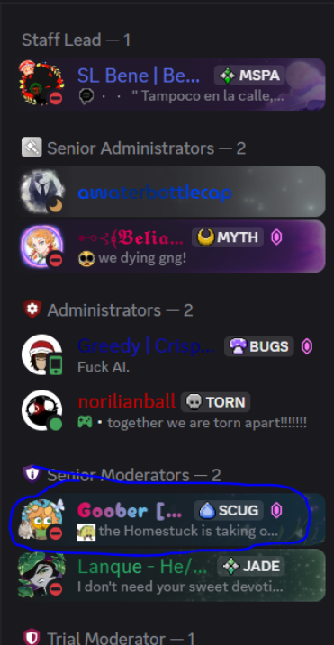 Minor Involvement: Investigation of current staff (2025/24/12, Discord/Social Media) revealed that a 25-year-old adult is employing/directing minors as young as 15 and 17 in a moderation capacity.