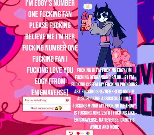 2023-Mid 2025 (FPE Fandom): Rebranded as Edgyaludon and currently Enigmaverse, her Twitter being circlesaroundu.
