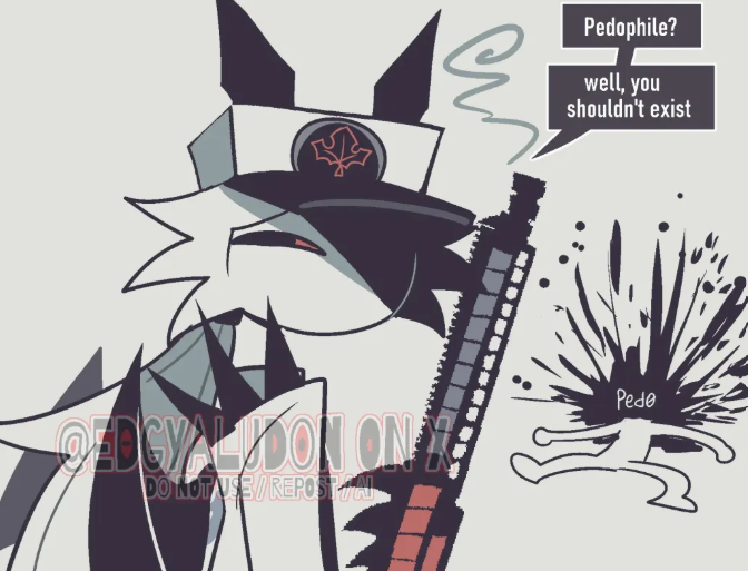 Enigmaverse produces "vigilante" art (e.g., her characters shooting "pedos") to build a social shield. This allows her to signal to new fans that she is "anti-creep," effectively masking her own documented history of engaging with similar taboo content.