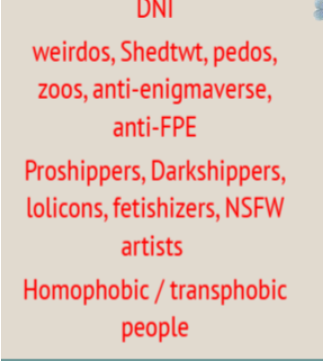 The "DNI" Shield: Current fans and staff use "DNI" (Do Not Interact) lists to block anyone bringing up the creator's past. This creates an echo chamber where the artist’s history is suppressed, young fans are taught to view evidence-based criticism as "harassment."
