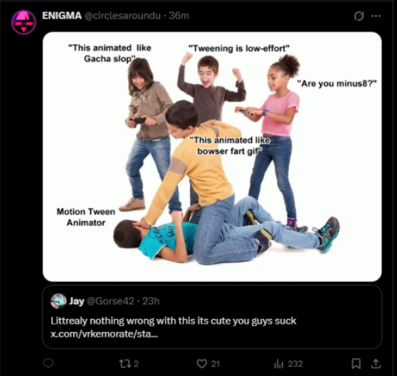 Enigma (an adult) frequently utilizes her seniority and massive platform to infantilize her critics (minors), telling them they are "not qualified" to speak. This creates a power imbalance where the "popularity" of Enigmaverse outweighs the "facts" of the investigation.