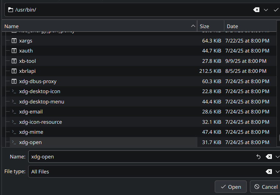 5. Search up "xdg-open" and select it