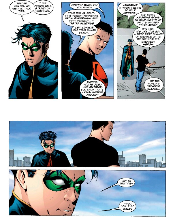 — (tim drake telling kon that he's 50% lex luthor) "not to mention, you could go bald" 🖼️ CAN HE BE SERIOUS FOR ONE SECOND