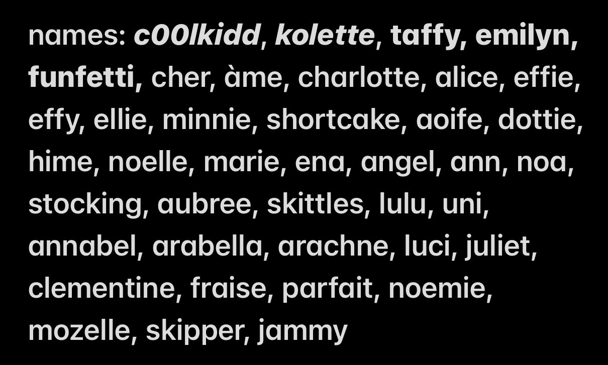 halloween, fashion, baking, editing, decomail, rentry, args, lost media, fiona apple, alicebanD, roblox exploiters, hangout game series, && point of no return