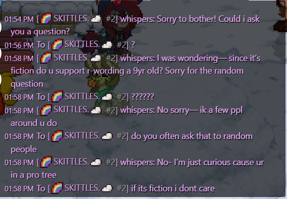 asking people weird shit like wtf, >_>"