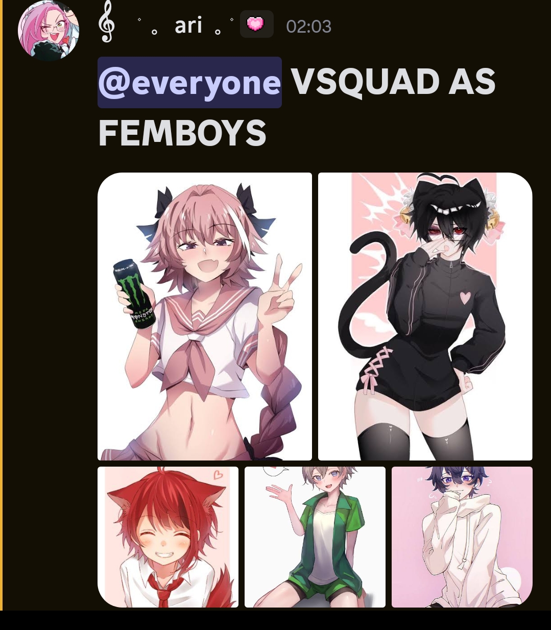 Dear diary, OKAY YESTERDAY WAS PEAK!!! Bro victim squad turned into everything. THOSE FUCKASS DANCING SMURFS THOSE DEFAULT DISCORD PFPS AND FEMBOYS. Together we are femboy nation! #WSS šŖ