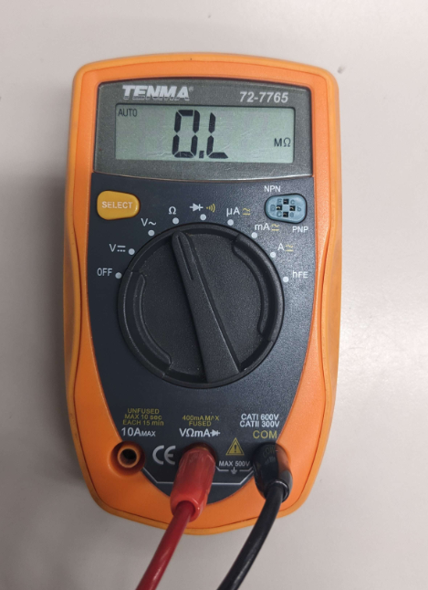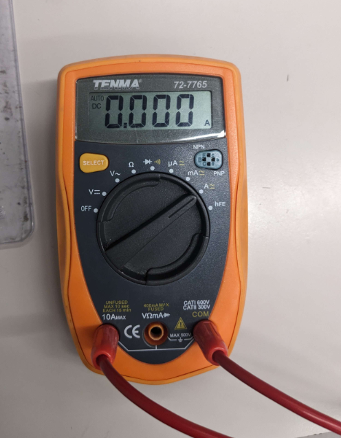 3. Now DISCONNECT the circuit ONE POINT so it's NOT working. Then connect the multimeter IN SERIES so the circuit is working again, and read the output: |