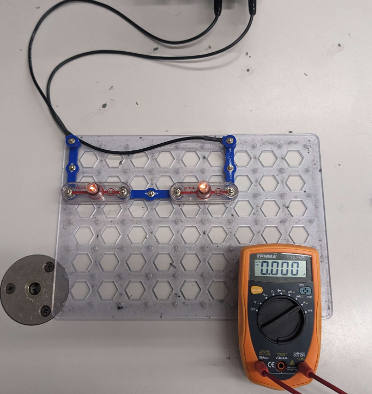 2. Take the circuit you want to analyze (make sure it's working / current is actively flowing): |