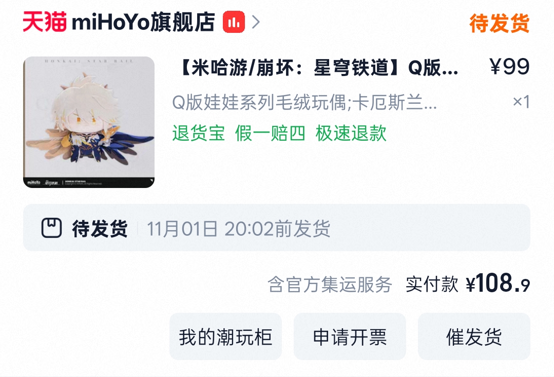 Yup...My love is on his way ♡ See You Tomorrow! Haha sorry I'm really excited... Phainon took 5 months to come home! I don't remember how long Mydei took since I got him on his second batch...Hmm. Either way, I'm really excited eek... I got both Phainon & Khaslana right after they immediately went on sale on taobao kyahaha